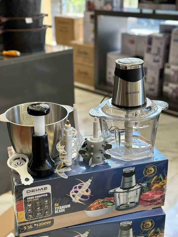 اگر به دنبال یک دستگاه پرقدرت، باکیفیت و کاربردی برای خرد کردن انواع مواد غذایی در آشپزخانه هستید، خردکن دو کاسه دیمی آلمان مدل DE205 انتخابی بینظیر برای شماست. این خردکن حرفهای با طراحی مدرن و ساخت باکیفیت آلمانی، کارایی و دوام بالا را برای کاربران خود به ارمغان میآورد.